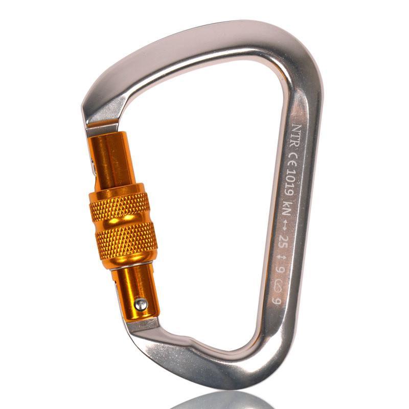 安全鉤從材質上來講,它通常是由不銹鋼、合金鋼或鋁合金制造。鋼制安全鉤的質地比較堅硬,而且沉重,適合用于連接錨點或與尖銳金屬器材接觸。鋁合金鉤環的破斷負荷并不遜于鋼制品,鋁質安全鉤相對而言重量較輕,但鋁合金較不耐切割,使用時應避免與其他銳利金屬鉤掛。