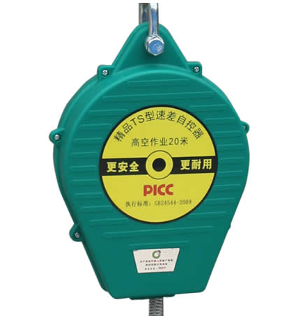 防墜器在重力作用下棘輪和棘爪會迅速嚙合完成制動,進而完成自鎖來保障不慎墜落的工作人員生命安全的重要裝置。我們都知道鋼絲繩在重力作用下大概伸出0.2M即可完成自鎖,根據h=1/2gt方 我們可以得知整個自鎖反應時間僅僅用了大約0.2秒。0.2秒能產生的沖擊力不足3000N,不會對人體造成傷害。