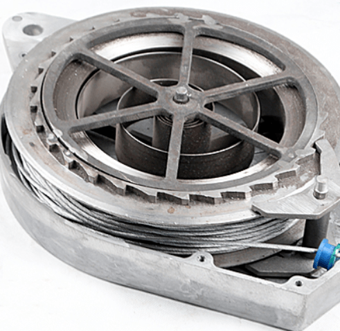 速差防墜器的主要制動(dòng)部分是由鼓輪,棘爪,棘輪,發(fā)條彈簧的相互作用來完成的。當(dāng)我們一點(diǎn)一點(diǎn)拉動(dòng)鋼絲繩時(shí)會(huì)帶動(dòng)鼓輪轉(zhuǎn)動(dòng),當(dāng)我們不再拉動(dòng)鋼絲繩時(shí),鼓輪會(huì)在發(fā)條彈簧的作用下回轉(zhuǎn)。這時(shí)鋼絲繩會(huì)一圈一圈的再次繞回到鼓輪上,回到初始狀態(tài)。