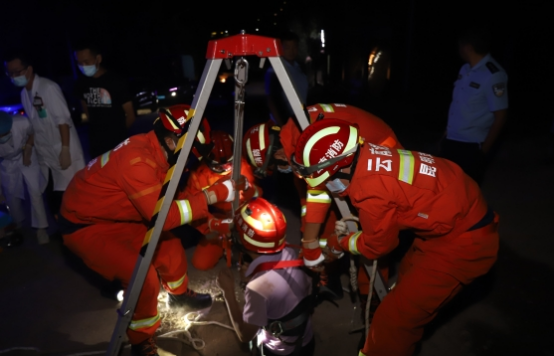 經過十幾分鐘的救援最終被困男子被成功救出,消防戰士也安然無恙。不管是高空作業還是井下救人,只要有墜落的可能,都要佩戴防墜器保護生命安全。