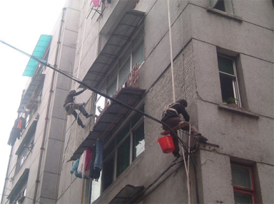 修復的過程屬于高空作業,施工人員需要借助繩索從樓頂下滑,因為沒有落腳點,修復的全程都是懸掛在空中的,危險系數極高。為了保護施工人員的安全,避免墜落事故,施工人員在維修前需要佩戴成華防墜器進行防墜保護。