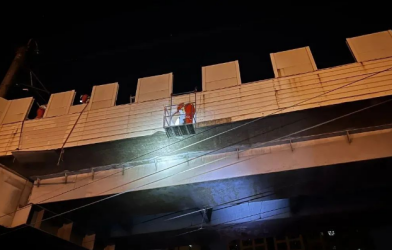 故障段是在3號(hào)線鎮(zhèn)坪路站至上海火車站區(qū)間的一段跨越鐵路京滬線和滬寧城際線約400米長(zhǎng)的結(jié)合梁,由于下方就是鐵路運(yùn)營(yíng)線路,維修時(shí)多有不便。為了順利完成維修作業(yè),工人決定采用吊裝的方式到達(dá)裝飾板外部進(jìn)行維護(hù)。橋梁高度較高,下方又是鐵路,為了保護(hù)工人的安全,避免墜落事故的發(fā)生,施工方要求工人在施工時(shí)一定要佩戴防墜器來(lái)保護(hù)自身的安全。