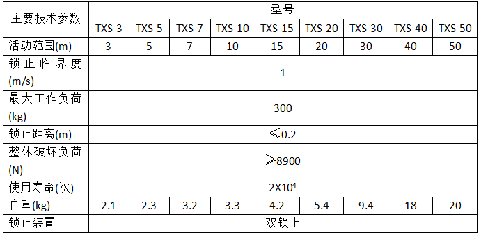 防墜器利用物體下墜速度差進行自控,高掛低用。TXS2系列使用時只需要將錦綸吊繩跨過上方堅固鈍邊的結構物上,將錦綸繩上的鐵鉤掛入“n”形環上,將鋼絲繩上的鐵鉤掛入安全帶上的半圓環內即可使用。