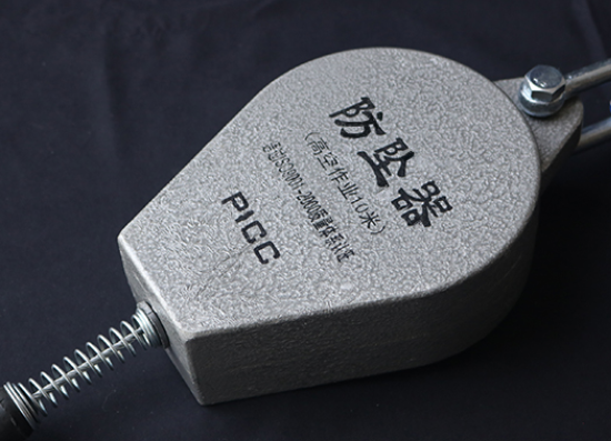 防墜器是一種高空作業墜落的保護裝置,使用方法很簡單,只需要將防墜器的吊鉤固定連接在橫擔上所纏繞的鋼絲繩上,然后將防墜器的下吊鉤或吊環連接工作人員所穿戴的防護帶上就可以了。工作人員在進行上下攀爬桿塔的過程,防墜器的設置不會影響到工人的檢查作業,一旦工作人員發生高空墜落,防墜器立刻受到人體墜落速度的影響而實現制動控制,保護了工作人員的人身安全,是高空作業必備的保護工具。